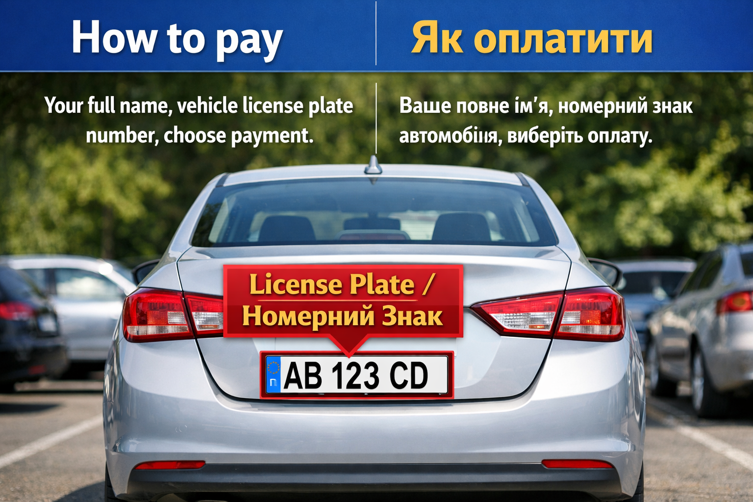 If the payment cannot be completed, you can pay by bank transfer. Please include your name and the vehicle license plate number in the payment note.